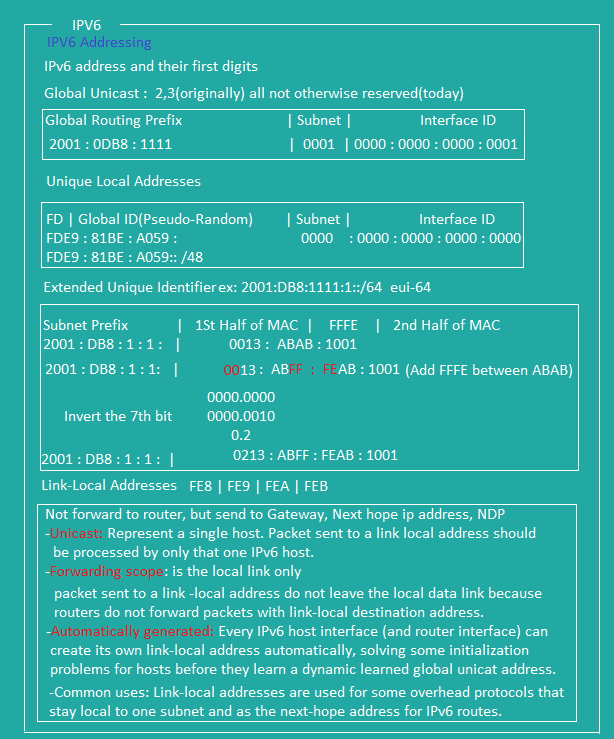 Abbreviation | IPv6 Subnetting | IPV6 Address | IPV6 Local Scope Multicast Addresses | IPv6 Multicast Scope Terms | More on IPv6 Multicast | IPV6 Command Reference | IPV6 More Command Reference | IPV6 Ethernet Configuration