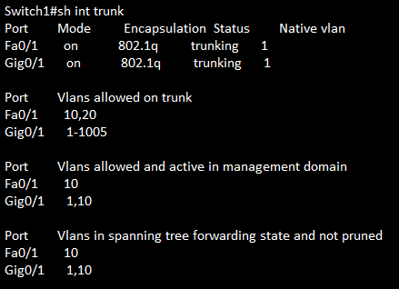 sh int gig0/1 status | show int gig0/1 switchport | show vtp status
